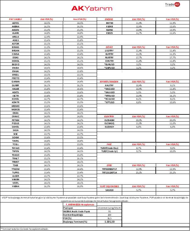 VİOP Span parametreleri 02.02.2026 Pazartesi günü, gün içi ilk risk hesaplama anından itibaren geçerli olacak şekilde güncellenecektir. Güncel parametreler aşağıdaki tabloda yer almaktadır. İlgili Takasbank duyurusu için tıklayınız.