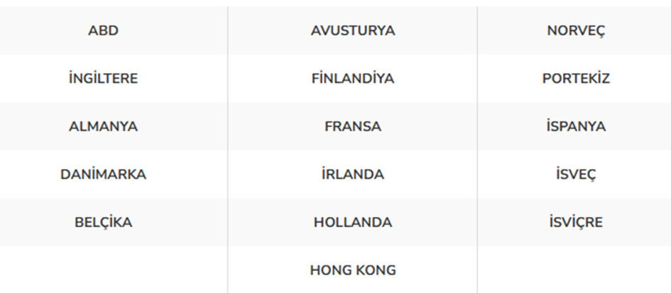 Aşağıda belirtilen 15 farklı ülkede yurt dışı hisse senedi alım-satımı gerçekleştirebilirsiniz.